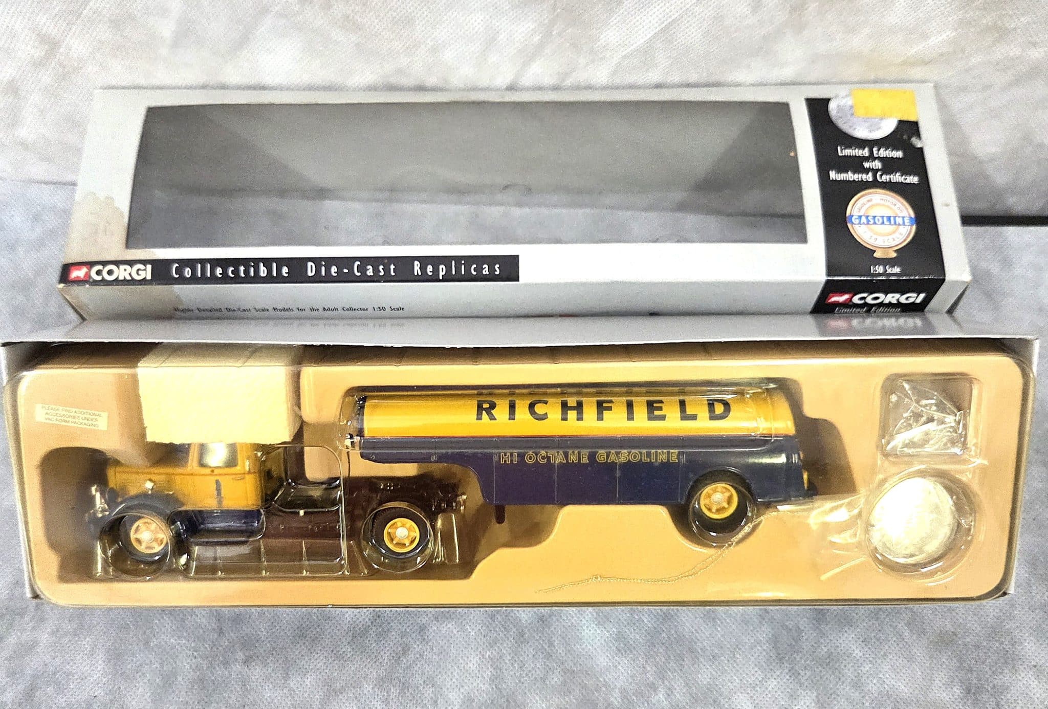 Collectible Die-cast Richfield Hi-Octane Gasoline tanker truck by Corgi