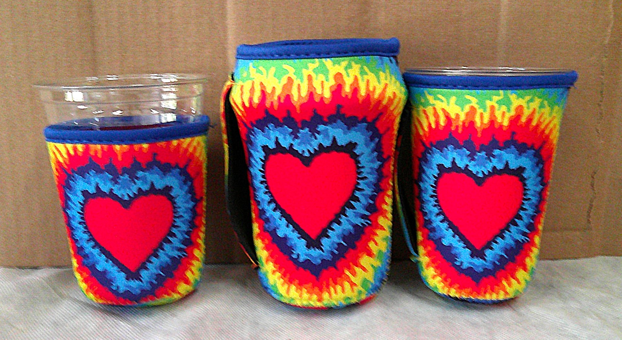 Tie-Dye Flame Pattern and a Central Red Heart, sleeve snugly fits standard cups
