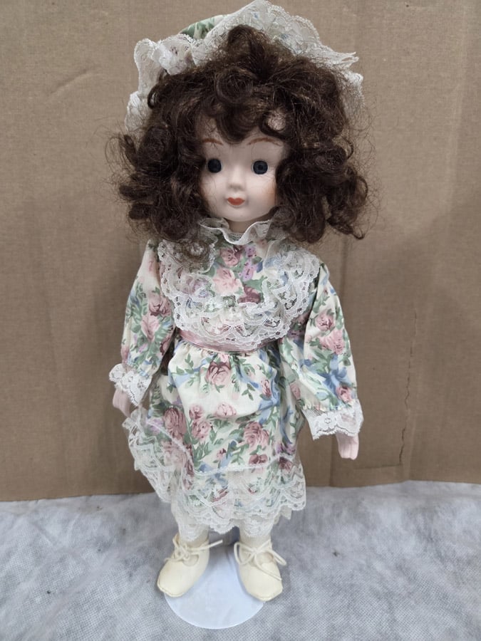 Vintage Porcelain Doll in Floral Lace Ensemble