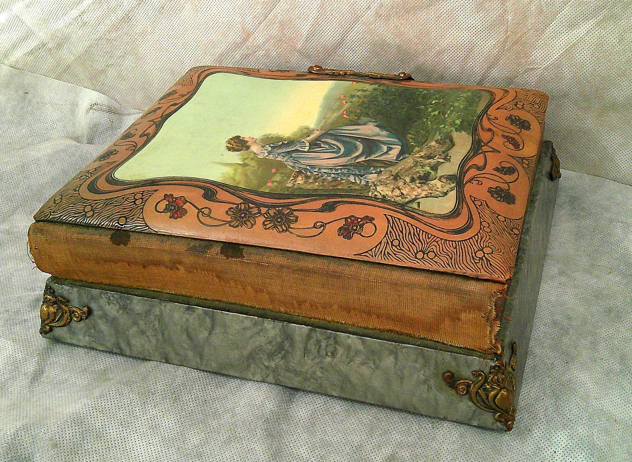 Antique Vintage Victorian Photo Album Music Box with Garden Lady Motif