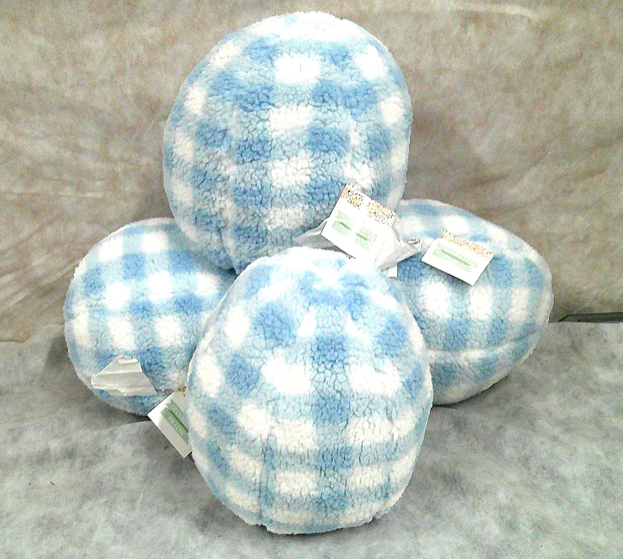 4 Round Plush Decorative Pillows – Blue & White Checkered Pattern